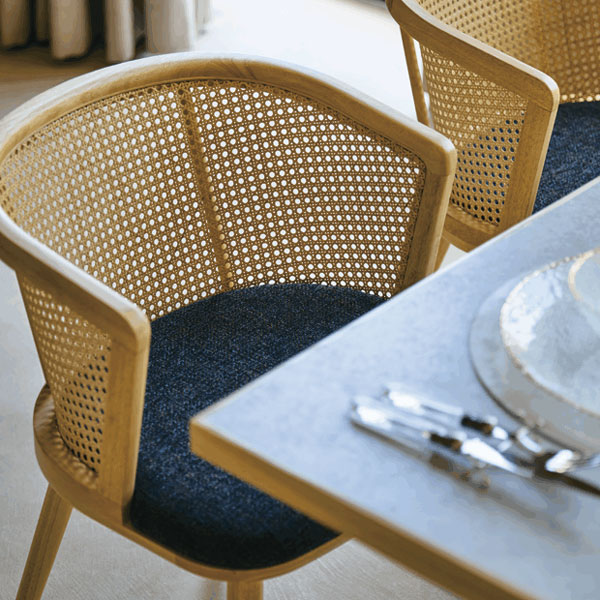 ラタン素材を全面的に使用したアームチェア。オリエンタルな雰囲気を現代風にアレンジしました。